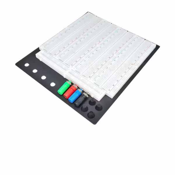 ZY-208 Breadboard 3220 Points dispose également de 4 bornes, d’un support en aluminium noir et de 4 entretoises en caoutchouc pour maintenir votre planche à pain suspendue en toute sécurité sur votre plant de travail.