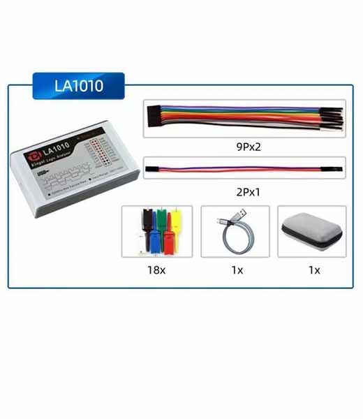 L’analyseur logique LA1010 offre des performances élevées. Il dispose de 16 voies d’entrée et d’une fréquence d’échantillonnage jusqu’à 100 MHz. Associé au logiciel PC KingstVIS, il permet l’échantillonnage simultané de 16 canaux de signaux numériques, convertis en formes d’onde numériques et affichés à l’écran. Il prend en charge de nombreux protocoles standard pour une communication de données simplifiée. Permet de tester et d’analyser des systèmes numériques (MCU/ARM/FPGA, etc.), de développer et de déboguer des programmes de communication, ou encore de surveiller et d’enregistrer des signaux numériques sur le long terme.